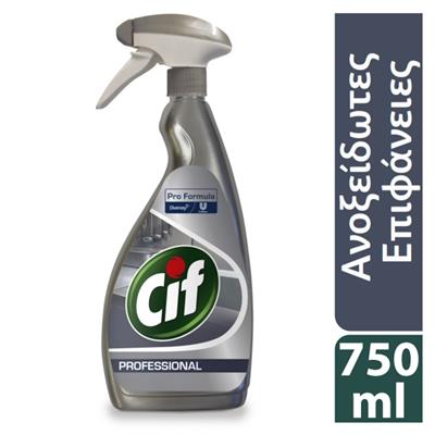Το Cif Professional Καθαριστικό Ανοξείδωτων Επιφανειών είναι χωρίς άρωμα και ιδανικό για χρήση σε ανοξοίδωτες επιφάνειες, οι οποίες δεν χρησιμοποιούνται για την προετοιμασία τροφίμων, όπως πάγκους εργασίας, ψυγεία, μετρητές και ντουλάπια. Αφαιρεί τη βρωμιά, τις μουτζούρες και τα αποτυπώματα από τα δάχτυλα σε δευτερόλεπτα αφήνοντας πίσω ένα λαμπερό αποτέλεσμα